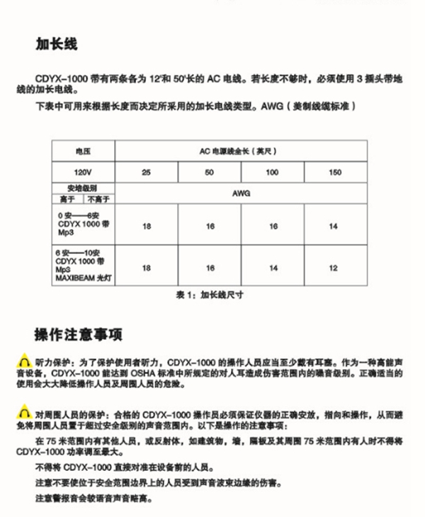 ▼CDYX-1000聲壓VS距離