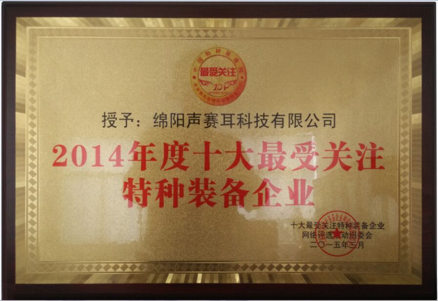 祝賀聲賽耳科技獲得十大最受關(guān)注特種裝備企業(yè)